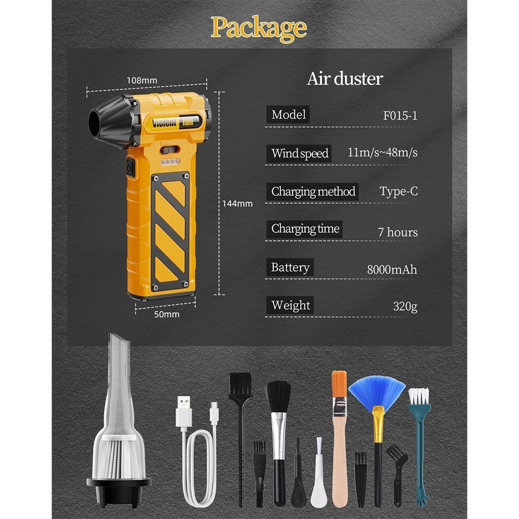 💨 منفاخ كهربائي قوي متعدد الوظائف – موديل F015 (إصدار 2024)【قوة نفخ فائقة بسرعة 130,000 دورة/دقيقة】 إليك أحدث جهاز لنفخ وإزالة الغبار من نوع F015 لسنة 2024. مصنوع من سبائك معدنية عالية الجودة، يتميز هذا الجهاز بمتانة قوية وعمر افتراضي أطول مقارنة بالمنتجات التجارية العادية. سرعة النفخ العالية جدًا (130,000 دورة في الدقيقة) تسمح بتنظيف الغبار بكفاءة فائقة، مما يضاعف من إنتاجيتك. كما يحتوي على وظيفة الشفط، ما يجعله مثاليًا للاستخدام في مختلف الظروف.【سرعة قابلة للتعديل المستمر】 يكفي تحريك الزر يمينًا أو يسارًا لضبط تدفق الهواء من 60,000 إلى 130,000 دورة/د.د بسهولة تامة دون الحاجة للضغط المستمر على الزر. تحكم سلس ومرن يوفر الوقت والجهد.【بطارية قابلة للشحن من نوع TYPE-C وسعة كبيرة】 مزود ببطارية قوية بسعة 8000 مللي أمبير، تُشحن بالكامل في حوالي 3 ساعات فقط عبر منفذ Type-C العصري. توفر وقت استخدام يتراوح من 20 إلى 100 دقيقة. يوجد مصباح صغير أسفل زر التشغيل يُظهر لك مستوى البطارية المتبقي لتكون دائمًا على علم بحالتها.【وظائف الأمان والطوارئ】 يحتوي على مطرقة أمان قوية لتهشيم الزجاج، بالإضافة إلى أداة لقطع حزام الأمان في حالات الطوارئ، مما يجعله مثاليًا في السيارة أيضًا. هو أكثر من مجرد منفاخ كهربائي – إنه أداة إنقاذ يُنصح بها للاستخدام في الأماكن الخارجية.【متعدد الاستخدامات وخفيف الوزن】 مثالي لتنظيف الحواسيب، السيارات، فتحات لوحة المفاتيح، المكيفات، الستائر، البالونات، بقايا الماء بعد الغسيل، وحتى حبوب الطلع. بفضل تصميمه اللاسلكي ووزنه الخفيف (320 غرام)، يمكنك أخذه معك في أي مكان واستعماله بكل حرية.📏 الأبعاد: الطول: 108 مم العرض: 144 مم السماكة: 50 مم الوزن: 320 غرام