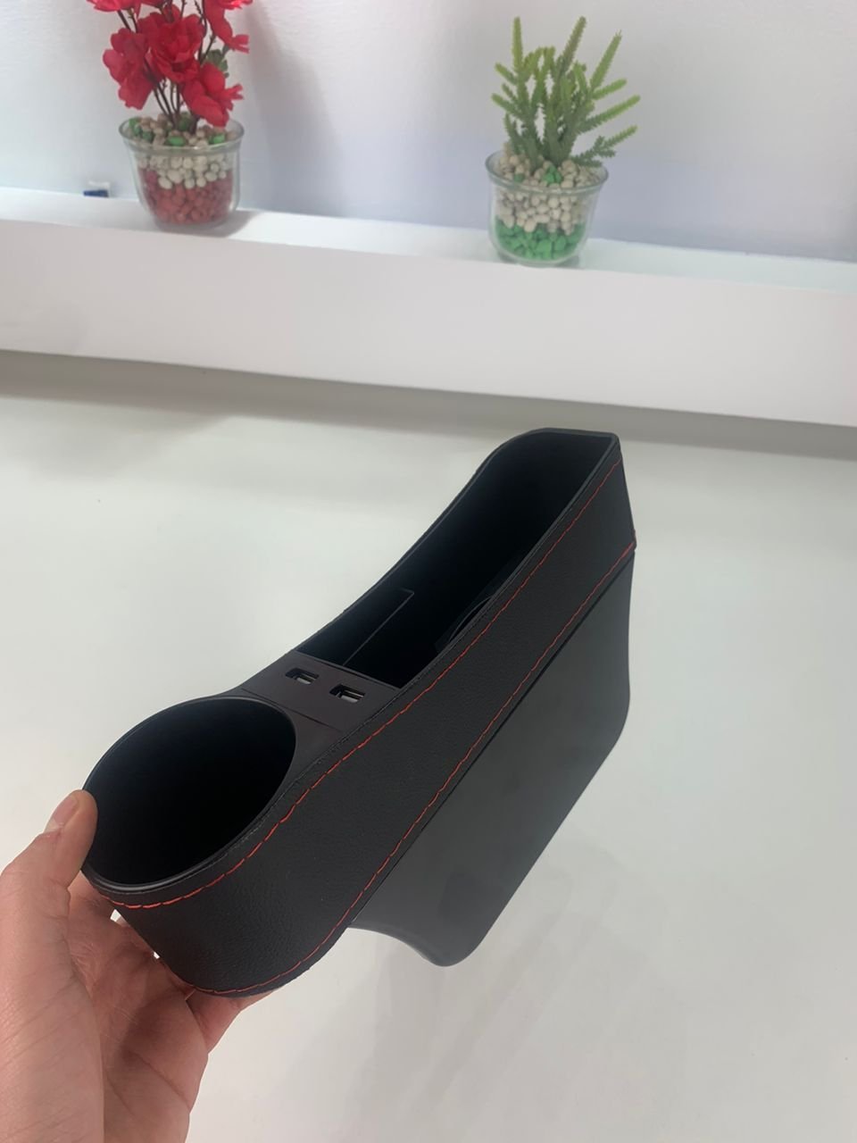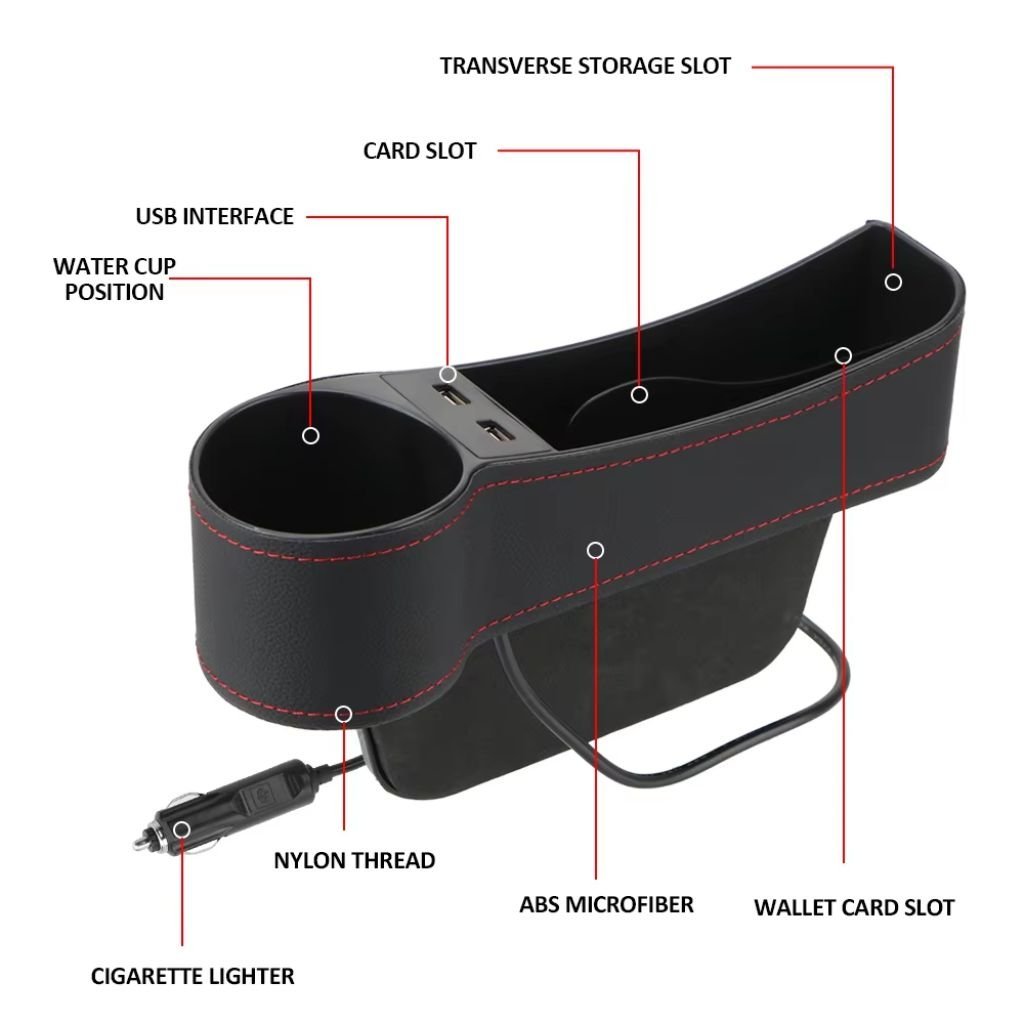 Organisateur Latéral de Console avec Chargeur USB et Porte-Gobelet – منظم جانبي لسيارة مع شاحن USB وحامل أكواب