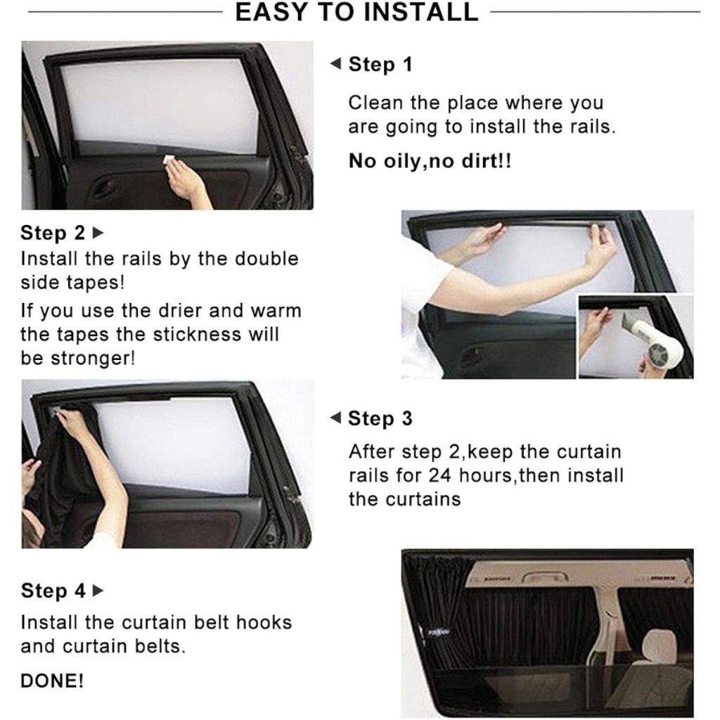 PACK 4 Pcs Rideau glissé de fenêtre Protection UV pour Voiture – ستار نوافذ جانبية في السيارة 4 قطع