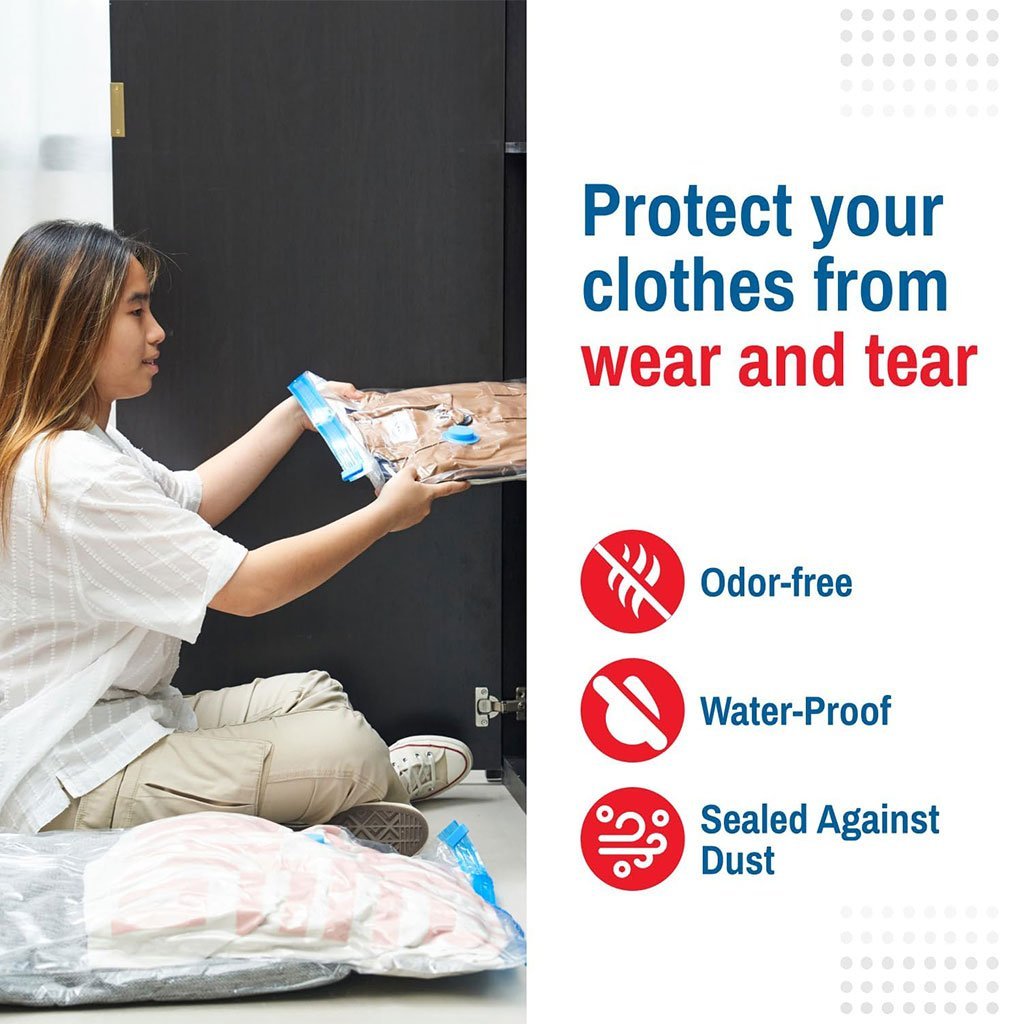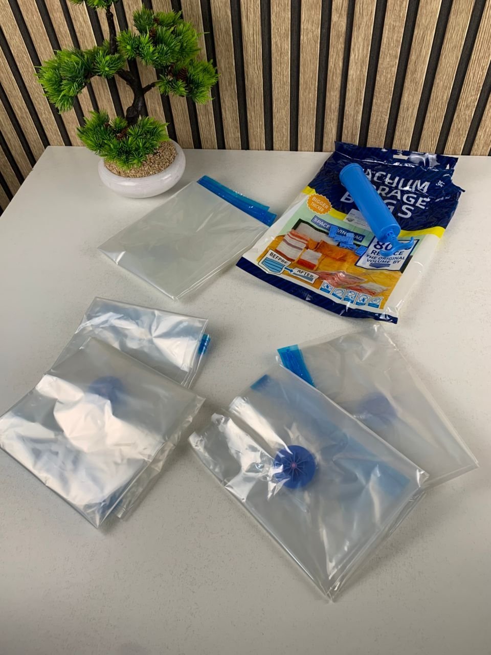 🧳✨ ودّع الفوضى ورحّب بالترتيب الذكي! ✨🧳 مع مجموعة الأكياس المفرغة من الهواء (Vacuum Bags)، أصبح تنظيم منزلك وتوفير المساحة أسهل من أي وقت مضى. مثالية لترتيب الخزائن، حماية الملابس من الغبار، أو التحضير للسفر والعطل! 🏠✈️🎁 ماذا ستحصل عليه؟🛏️ 1 كيس تفريغ هواء 80×100 سم مثالي للأغطية، اللحف، والملابس كبيرة الحجم.👕 2 كيس تفريغ هواء 60×80 سم رائع لتخزين الملابس الموسمية والقطع الحساسة.🧸 2 كيس تفريغ هواء 50×70 سم مناسب للإكسسوارات، الألعاب، والأغراض الصغيرة.🔧 مضخة تفريغ هواء مرفقة عملية وسهلة الاستخدام لتفريغ الهواء بسرعة.🚀 الفائدة؟تقليل حجم الأغراض حتى 80% 📉حماية من الغبار، الرطوبة، والحشرات 🛡️ترتيب مثالي وتوفير كبير للمساحة 📦💡 حل عملي، سريع وفعّال لكل منزل منظم!