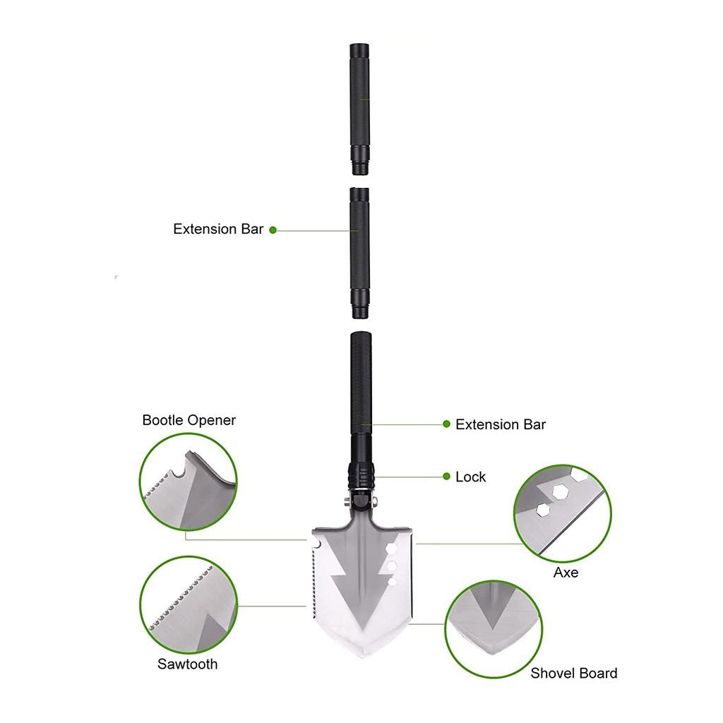 ⛺️ مجرفة تخييم متعددة الاستعمالات – أداة البقاء المثالية✔️ قوية وصلبة : مصنوعة من فولاذ عالي الكربون لمقاومة أقصى الظروف. ✔️ أداة 3 في 1 : مثالية للحفر، تقطيع الأشجار، حفر الخنادق أو حتى كأداة بستانية للغرس. ✔️ معدات نجاة مدمجة :🧭 بوصلة لتحديد الاتجاه🍾 فتّاحة زجاجات⛏️ معول للصيد أو الرحلات الشتوية✔️ تصميم قابل للتعديل : يمكن ضبط طولها بين 36.8 سم و 71.9 سم حسب الحاجة. ✔️ مساحة تخزين ذكية : المقبض يحتوي على مقاطع داخلية لتخزين أدوات النجاة الإضافية. ✔️ سهولة النقل : تأتي مع حقيبة متينة مزودة بحزام وحلقة Velcro لحملها وتنظيم جميع القطع.📐 الأبعاد : ‎74 × 13.9 × 3.0 سم ⚖️ الوزن : 1.62 كغ 🎨 اللون : أسود (28 بوصة) 🛠 المادة : فولاذ عالي الكربون