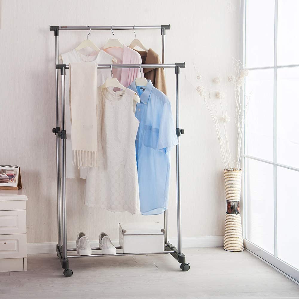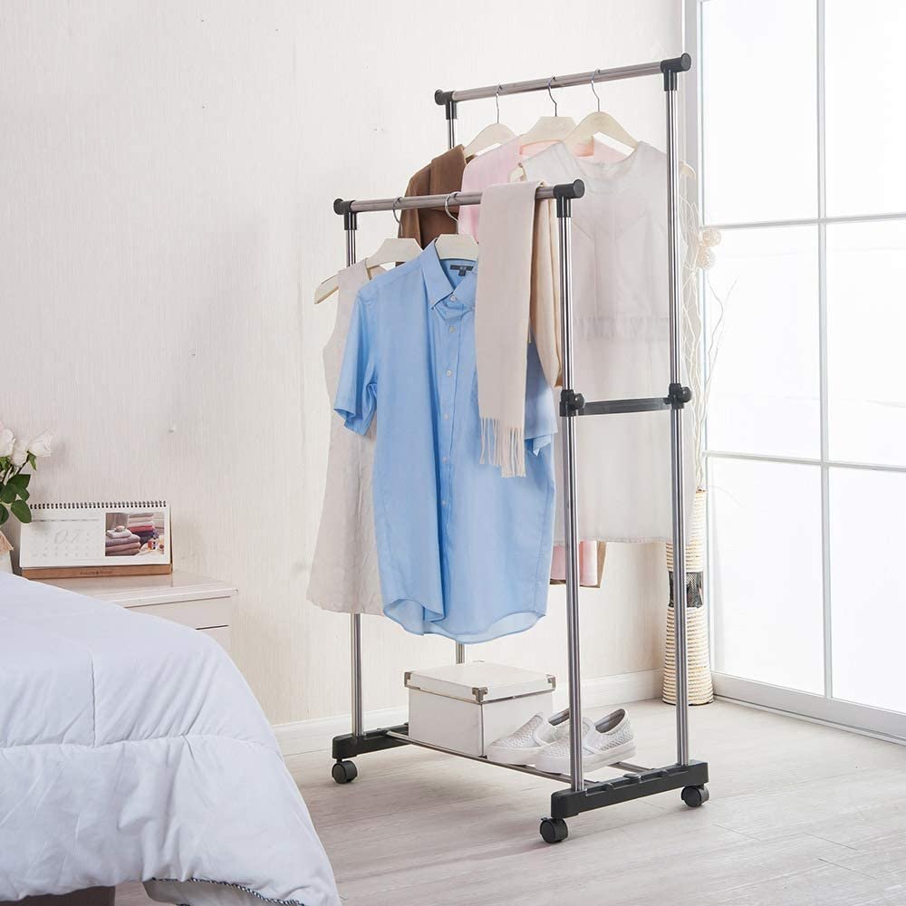 Penderie 2 Barre et porte-chaussures 2 en 1 en acier inoxydable