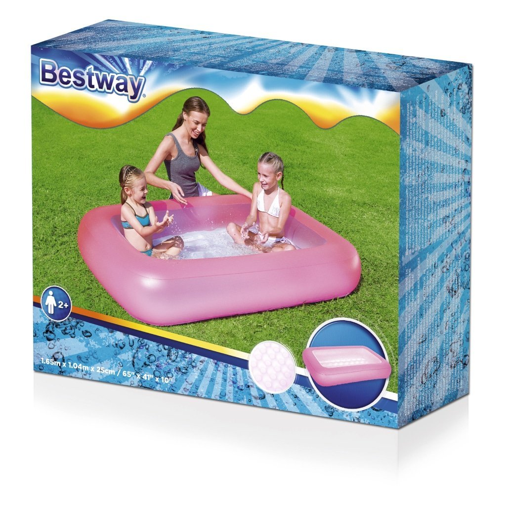 حمام سباحة قابل للنفخ للأطفال 165 × 104 × 25 سم – Bestway 51115تصميم مناسب للأطفال بعمر 3 سنوات فأكثر.قاعدة لينة قابلة للنفخ توفر الراحة أثناء اللعب.جدران سميكة قابلة للنفخ تعمل كمسند آمن للطفل.سهل النفخ والتفريغ والتخزين.السعة: 102 لتر.المادة: PVC بسُمك 0.24 مم.حجم العبوة: 24 × 24 × 6 سم – الوزن: 2 كجم.المرفقات: قطعة إصلاح.