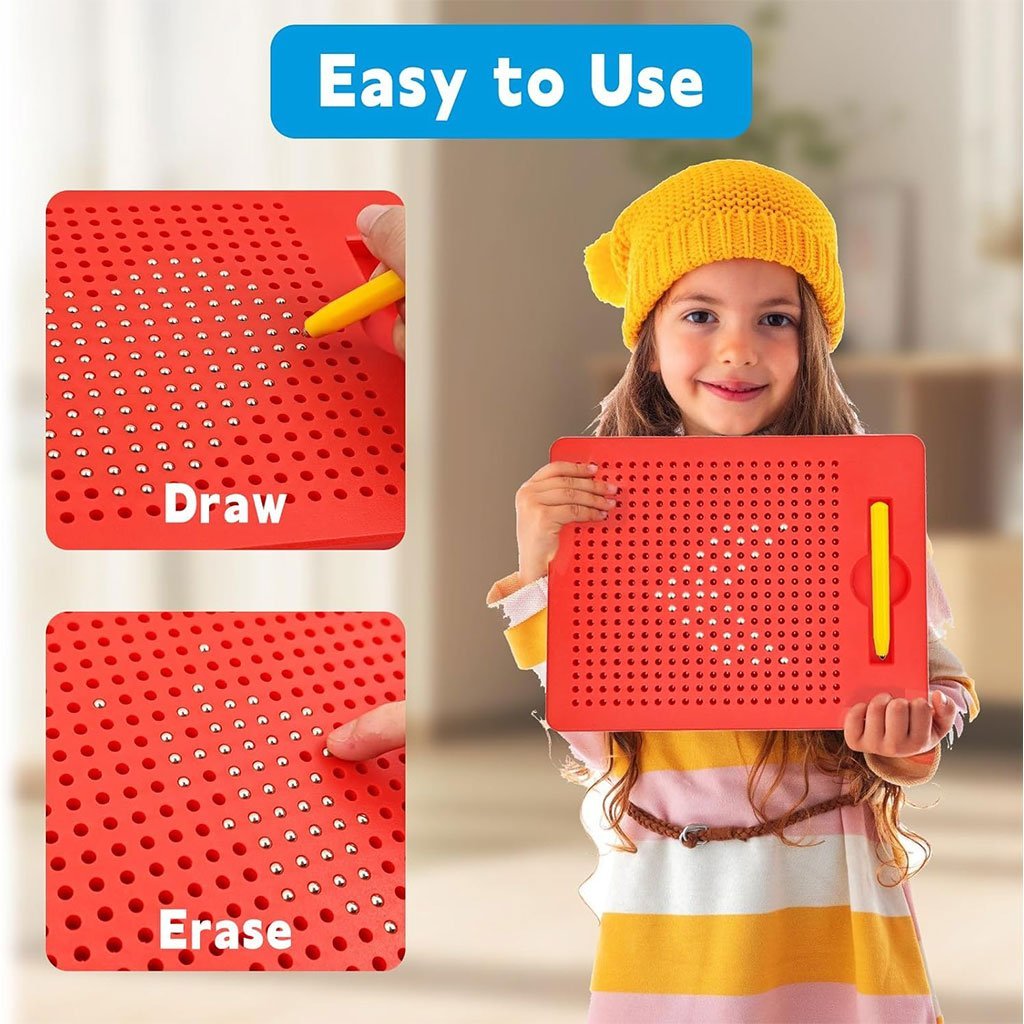 🧲 لوحة رسم مغناطيسية للأطفال – متعة بلا حدود!🎨 رسم بدون فوضىيستطيع الأطفال الرسم والابتكار على لوحة الرسم المغناطيسية باستخدام القلم المرفق دون الحاجة للورق أو الحبر. كما يمكنهم مسح الرسومات وإعادة استخدامها في أي وقت. تتوفر أيضًا بطاقات رسم مزدوجة الوجه لتساعد الطفل على تقليد الأشكال وتعلّم الرسم بسهولة.📏 مضغوطة وسهلة الحملالأبعاد: 21.5 × 17.5 × 1.2 سممناسبة تمامًا ليد الطفليمكن وضعها في الحقيبة أو المكتب مثالية للاستخدام في المنزل، المدرسة، أو حتى أثناء السفر 🚗✈️🧒 سهلة الاستخداممرّر القلم المغناطيسي على سطح اللوحة لرفع الكرات المعدنية وتشكيل الرسومات.لإعادة الكرات إلى مكانها، ادفعها بخفة بواسطة جانب القلم أو الأصبع.🔒 آمنة ومناسبة للأطفالمصنوعة من بلاستيك عالي الجودة وبكرات فولاذية آمنة.البراغي مثبتة بإحكام ومقاومة للسقوط.الكرات مثبتة داخل اللوحة ولن تسقط نهائيًا. ✔️ لعب آمن ومطمئن للآباء.🧠 تنمية وتعلم مبكرهذه اللوحة هي وسيلة رائعة لتطوير:المهارات الحركية الدقيقةالتنسيق بين العين واليدالإبداع والتخيل كما يمكن للأطفال اللعب مع والديهم لتعزيز التفاعل والتواصل الأسري 🤝