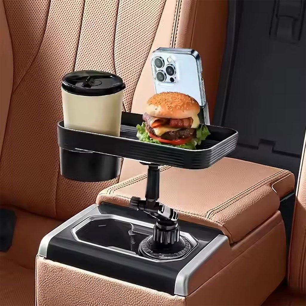 طاولة قابلة للدوران لحامل الأكواب في السيارة 🚗🔄 تحريك سهل وقابل للتعديل تمتاز هذه الطاولة بزوج من الأذرع الدوارة وقاعدة تدور بـ 360 درجة، ما يتيح لك تعديل وضعيتها حسب الحاجة بسهولة. بفضل تثبيتها المحكم، تبقى الطاولة ثابتة دون خطر السقوط، مما يجعل تجربة تناول الطعام داخل السيارة أكثر راحة لك وللركاب 🍔🥤.💪 متينة وثابتة مصنوعة من بلاستيك ABS عالي الجودة، الطاولة تحتوي على حامل للهاتف لمشاهدة الفيديوهات أثناء الأكل 📱. تتحمل وزنًا يصل إلى 3 كغ، ويمكنك وضع الوجبات الخفيفة، المشروبات، أو حتى الوجبات السريعة بكل أمان.🧃 تصميم متعدد الاستخدامات الطاولة مزوّدة بحامل للأكواب، وسادة سيليكون مانعة للانزلاق، وقاعدة لوضع الأطباق أو الملحقات الصغيرة. كل شيء مصمم ليوفر لك أقصى درجات الراحة والترتيب أثناء القيادة 🚘.🧳 توفر المساحة وتنظيم السيارة تساعدك هذه الطاولة على تنظيم أغراضك بشكل مثالي، وتمنع سقوطها بين المقاعد. يمكنك استخدامها لتخزين الهاتف، المحفظة، المفاتيح، النقود وغير ذلك لجعل رحلتك أكثر راحة وأمانًا.📐 المواصفات • الأبعاد: 29×20×14 سم • المواد: بلاستيك ABS • الدوران: 360° • الوزن الموصى به: حتى 3 كغ • مناسب: للرحلات، التنقل اليومي، العائلات، إلخ.