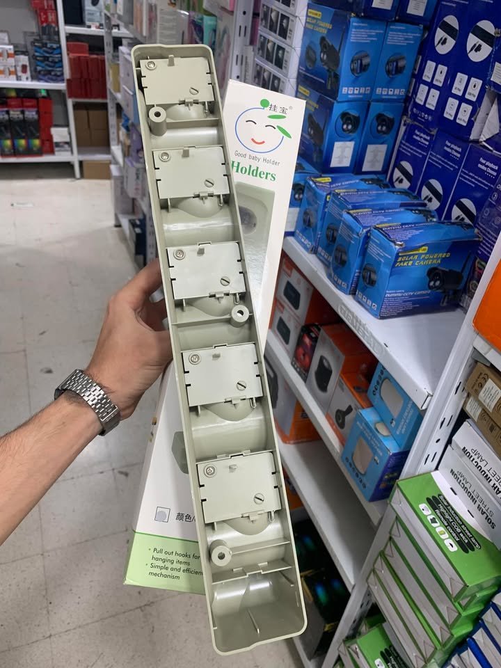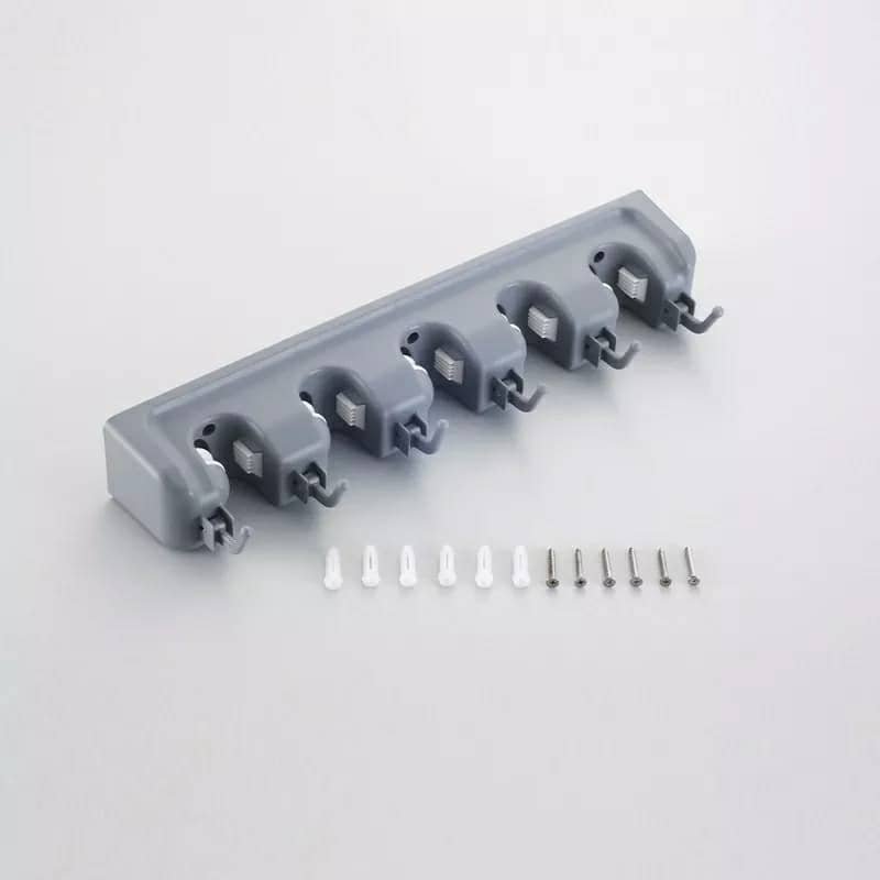 حامل المكانس يريحك من فوضى المكانس وأدوات التنضيف، يمسك العصى بقبضتين وتكون كل المكانس باتجاه واحد للأسفل بمنظر جد مرتب ومريح لا تشغل حيز ومساحة كبيرة على العكس توفر أكبر مساحة ممكنة..يمكن تثبيتها على الحائط أو على باب الخزانه.تحتوي على خمس فتحات تستوعب عدد كبير من الأغراض: كما يوجد بها 6 علاقات لمختلف الأدوات .. قدم طلبك فورا … متين وذو جودة عالية . 4 مقابض و5 علاقات . موفر للمساحة . مثالي لوضعه داخل الحمام. يمكن تثبيته على الجدار او على الباب.