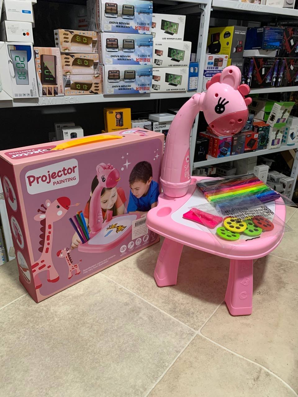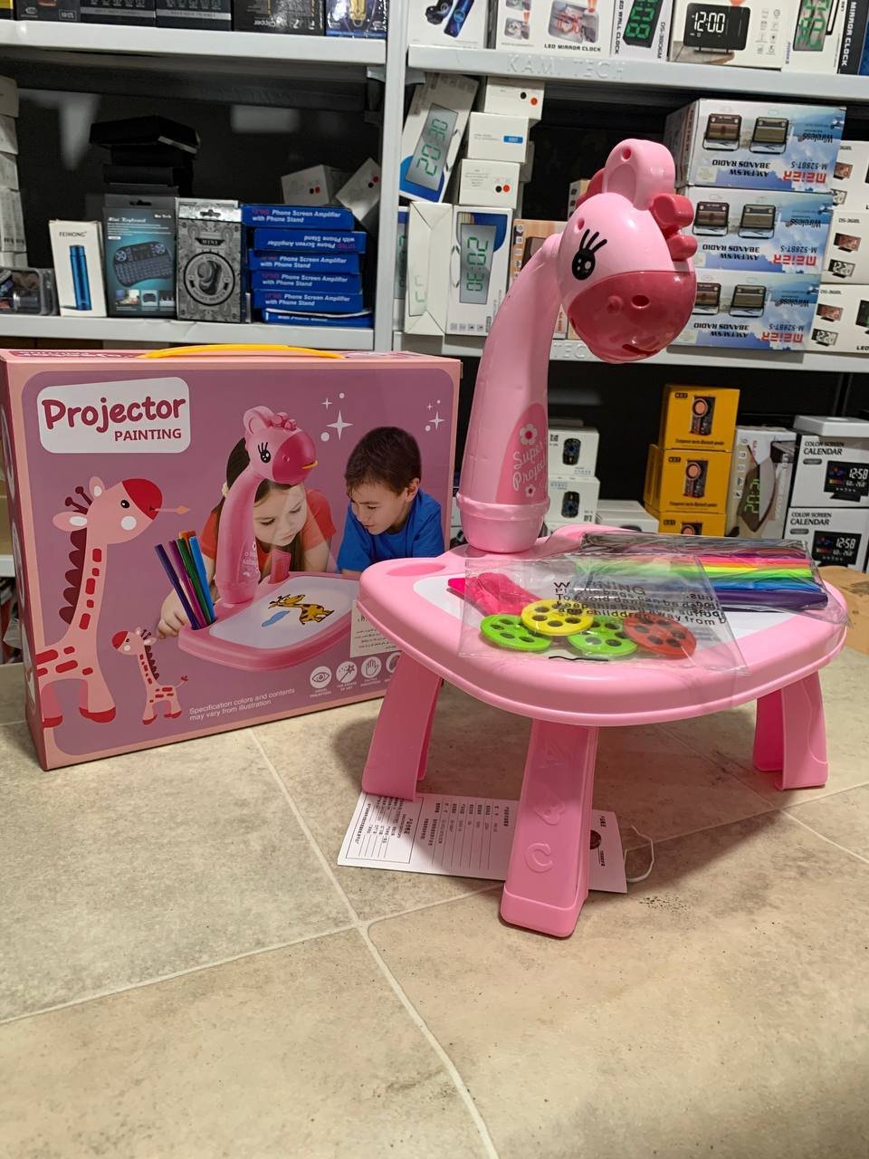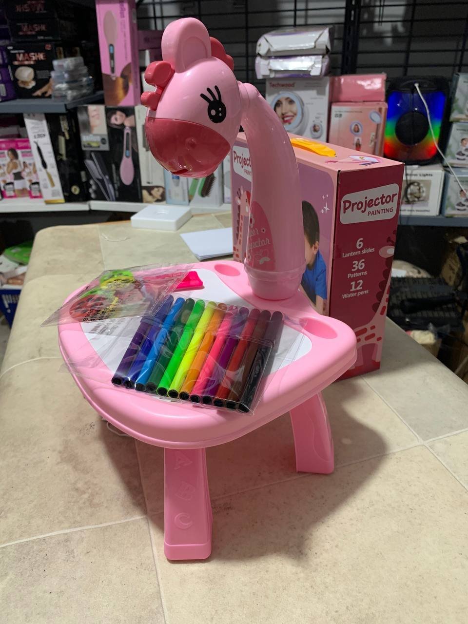 بروجكتور تعليمي موسيقي للأطفال للرسميسمح للأطفال بالرسم حسب الصور المسقطة على الطاولة أو دفتر الرسميتضمن 3 شرائح إسقاط (24 صورة متنوعة)مزود بالموسيقى لجذب الأطفال وتشجيعهم على البقاء لفترة أطول في اللعبيطور إدراك الألوان ويعزز الخيال وحب الرسميساعد الطفل على تنسيق حركة اليد والعين والعقلالمادة: بلاستيكيعمل بـ 3 بطاريات AA (غير مشمولة)الألوان والحجم حسب الصور المرفقة