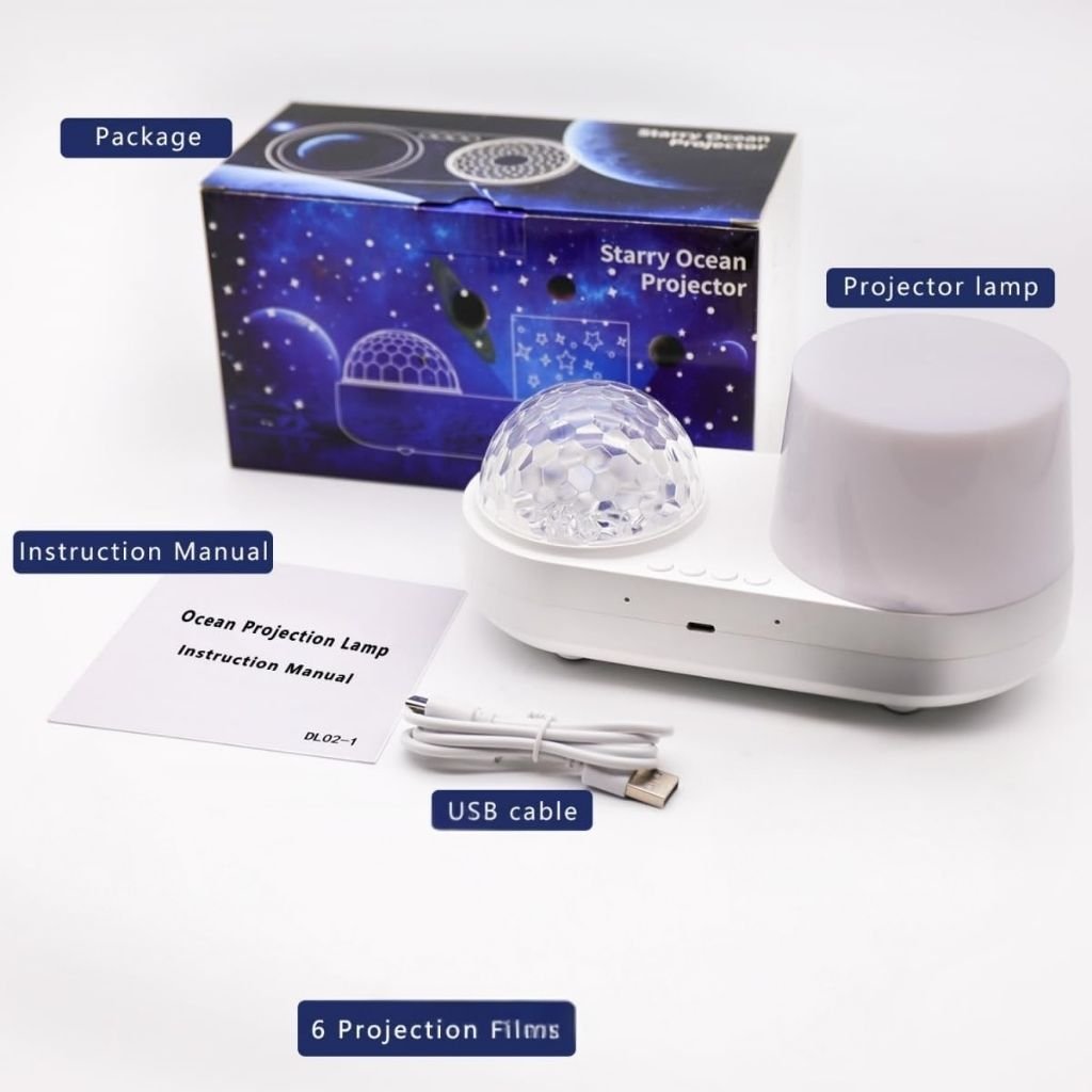 جهاز عرض أمواج المحيط والنجوم – مزود بـ 6 شرائح قابلة للتبديل و10 ألوان لأمواج المحيط لخلق أجواء مريحة للأطفال. دوران 360° – يغطي الغرفة بالكامل لتجربة بصرية ساحرة. مؤقت مدمج – لإيقاف الجهاز تلقائيًا بعد وقت محدد، مما يضمن نومًا هادئًا. زينة متعددة الاستخدامات – مثالي لغرف الأطفال، الحفلات أو كعنصر ديكوري مميز.