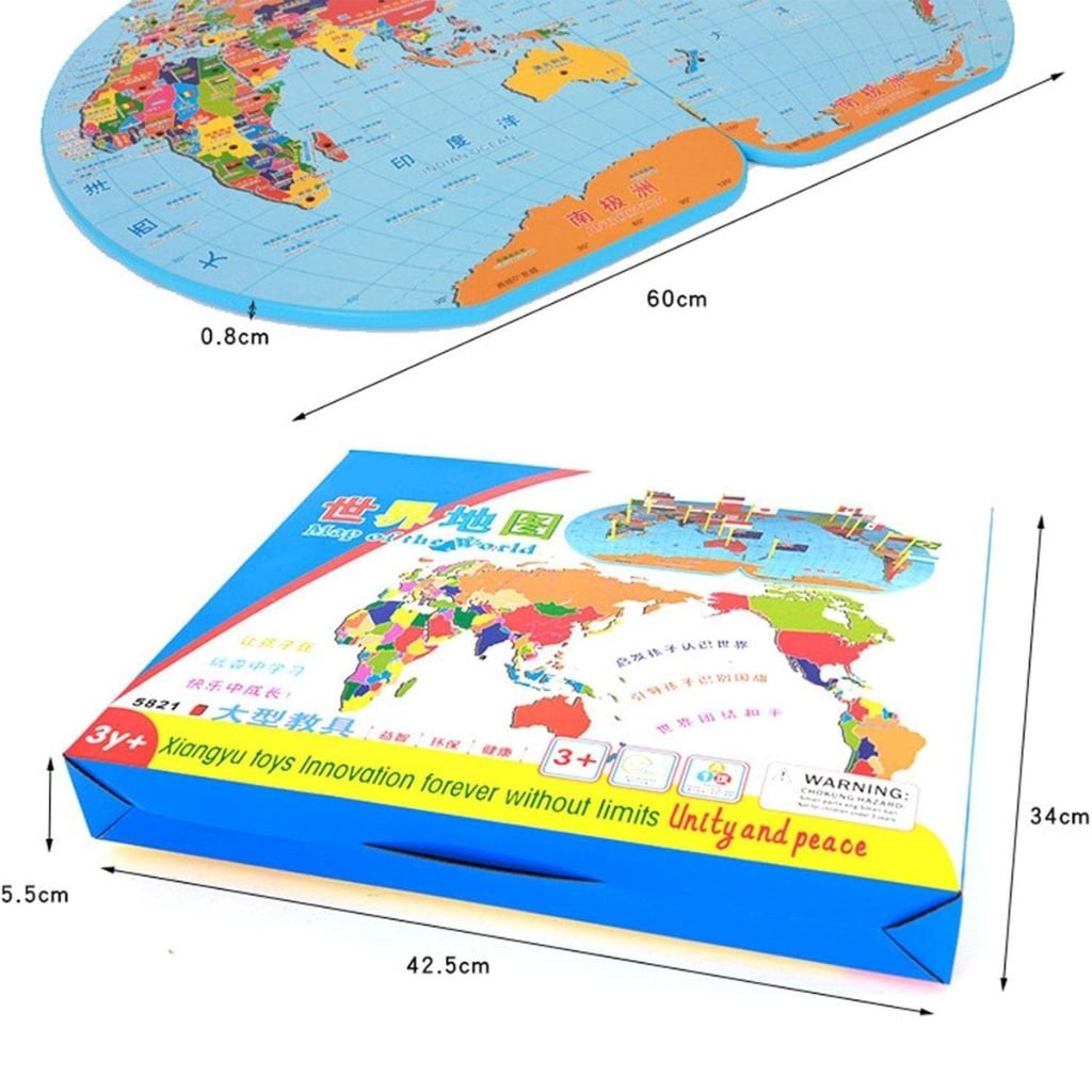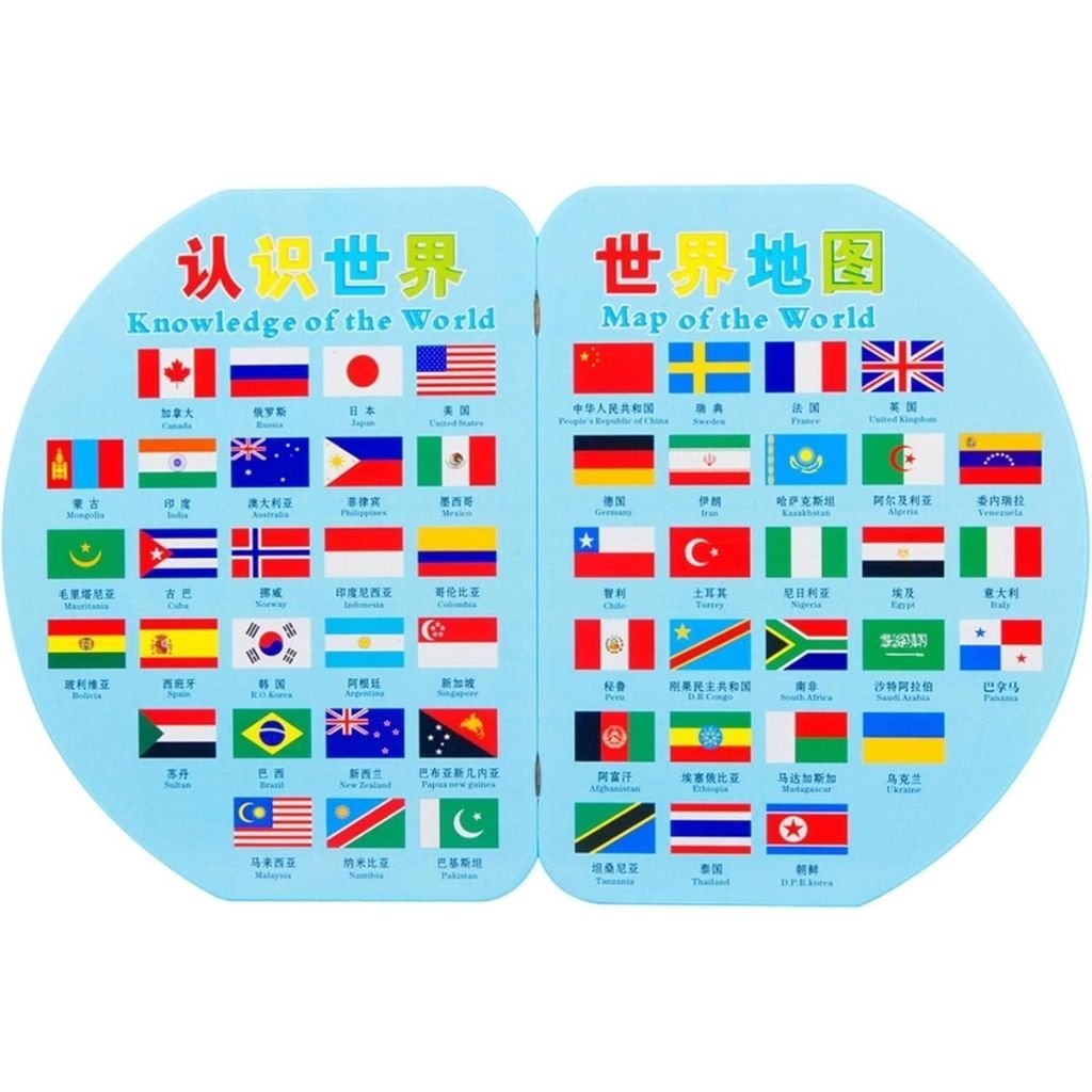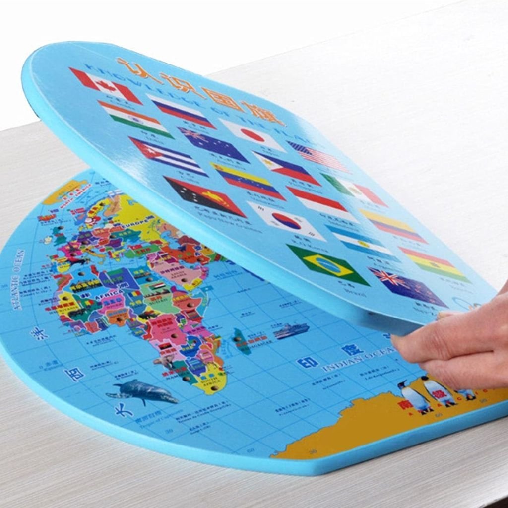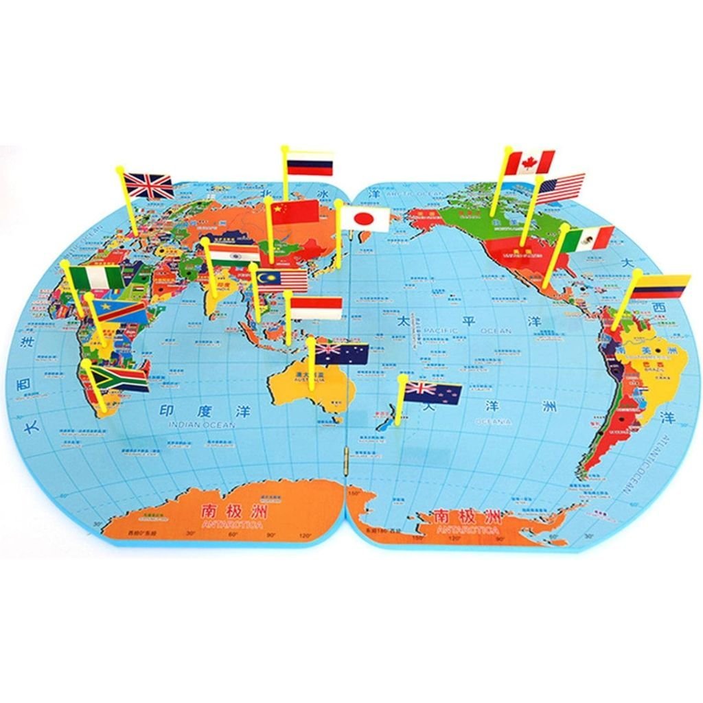 Puzzle Carte du Monde en Bois Pliable avec Drapeaux et Capitales – لعبة تعليمية للأطفال خريطة العالم مع الأعلام والعواصم