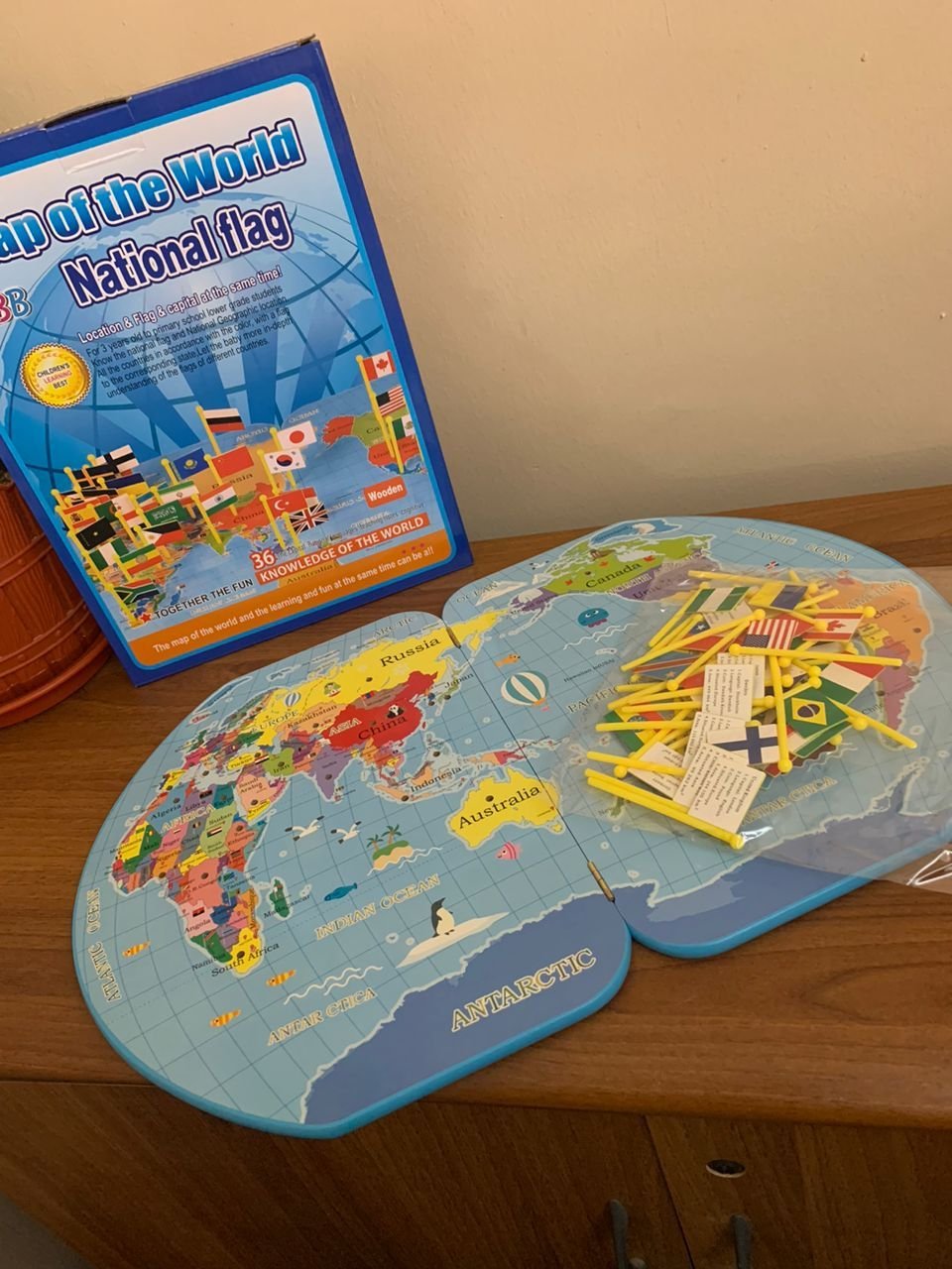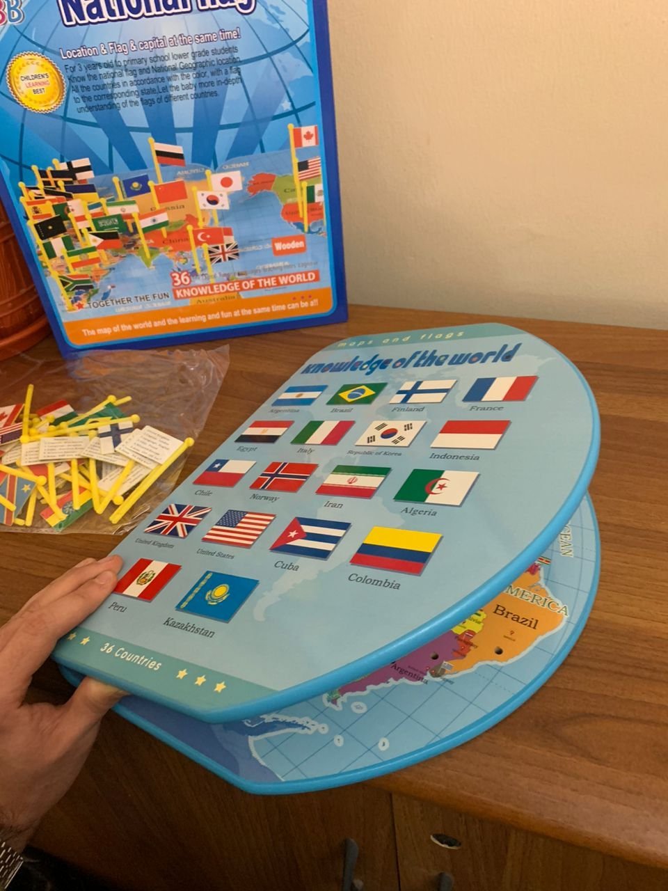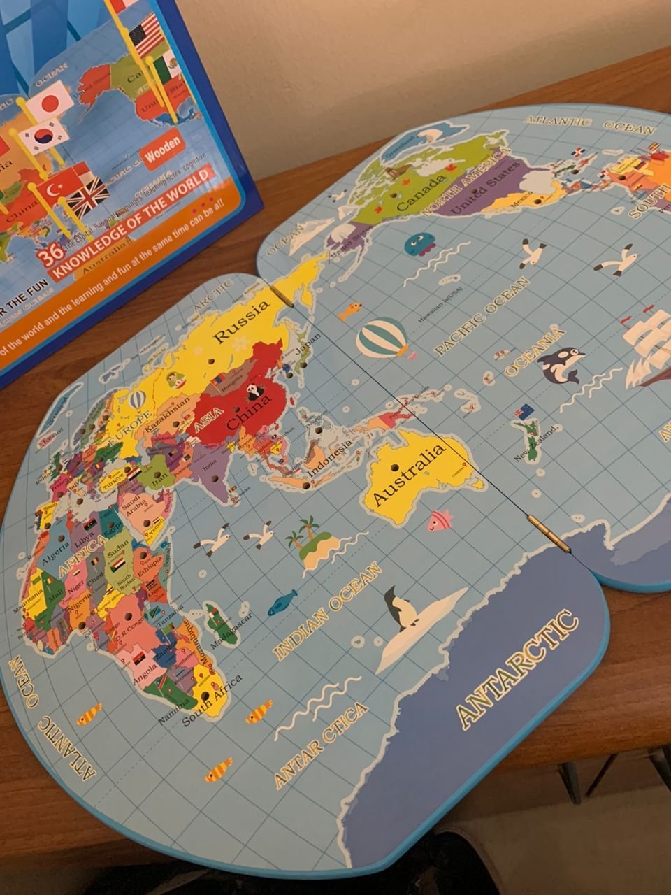 Puzzle Carte du Monde en Bois Pliable avec Drapeaux et Capitales – لعبة تعليمية للأطفال خريطة العالم مع الأعلام والعواصم