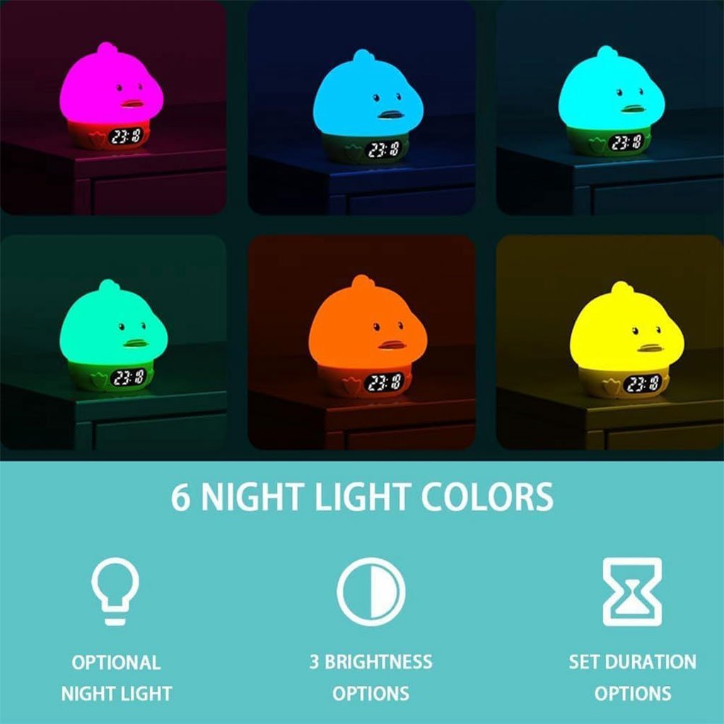 ساعة منبّه متعددة الوظائفسهلة الإعداد: أزرار واضحة في الخلف للتحكم السريع.منبّهان مع وظيفة الغفوة: لتخصيص المنبه لأيام الأسبوع والعطلة مع إمكانية تأجيل التنبيه بلمسة واحدة.تصميم مميز مضاد للتوتر: شكل لطيف يمكن ضغطه أو عصره لتخفيف القلق والتوتر.إضاءة متعددة الألوان: تعمل كمنبّه وضوء ليلي بلمسة واحدة مع إمكانية تغيير اللون والسطوع.هدية مثالية: مناسبة للأطفال والكبار وكهدية عملية وأنيقة.