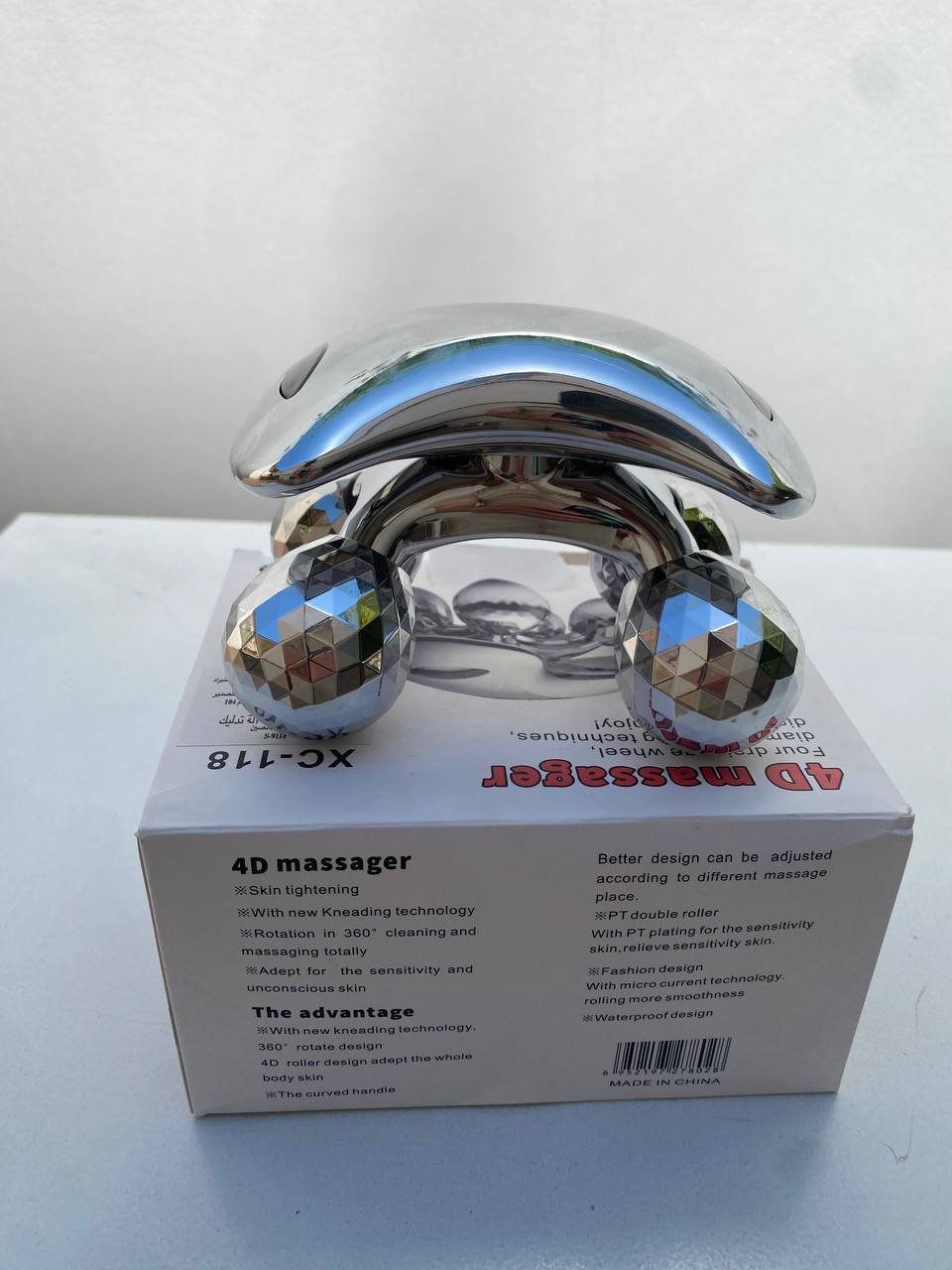 جهاز تدليك يدوي 4D متعدد الاستخدامات4 عجلات تدليك بتصميم أنيق ولون فضيمناسب لجميع أجزاء الجسم: الوجه، الذراعين، الساقين وغيرهايعمل بدون بطاريات أو كهرباءكرات دوارة تحاكي حركات التدليك الطبيعيدوران 360 درجة وسهل التنظيفيعزز الدورة الدموية ويؤخر علامات الشيخوخةيعمل على شد البشرة وتقليل الانتفاخ تحت العين والهالات السوداءمزوّد بألواح شمسية صغيرة تولّد تيارات كهربائية لطيفة أثناء التدليكيساعد في تنحيف الجسم وشدّ البشرة وتخفيف الإرهاق العضلي