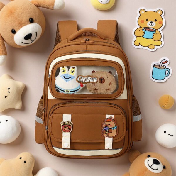 Sac à Dos Enfant Ludique avec Plusieurs Compartiment et un Peluche LM-5122 Marron – حقيبة ظهر للأطفال بني