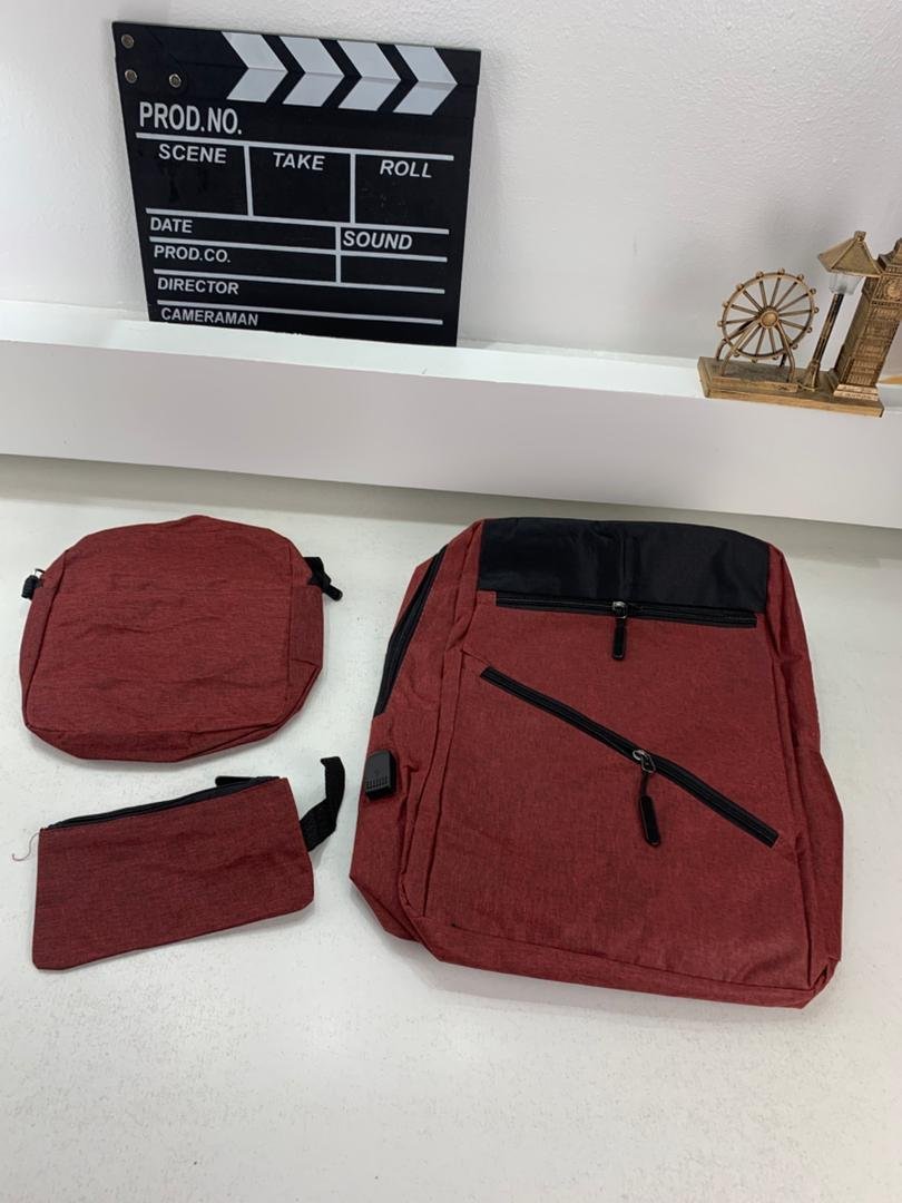 Sac à dos homme avec sac bandoulière et trousse 3en1 rouge 127772-5 – محفظة ظهر رجالية 3 قطع أحمر