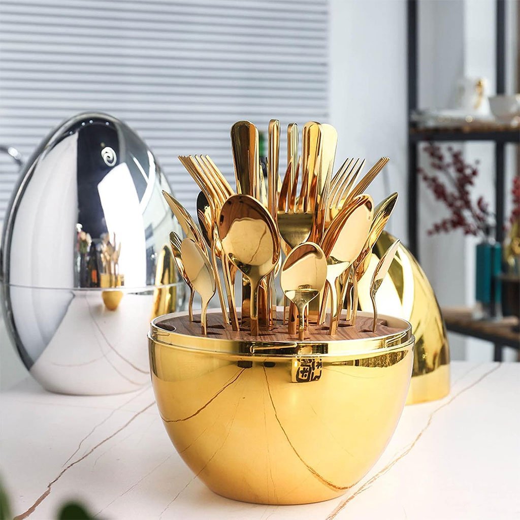 Serie Ensemble De Couverts Créatifs En Forme De Œuf Dorée 24Pcs – طقم أدوات المطبخ