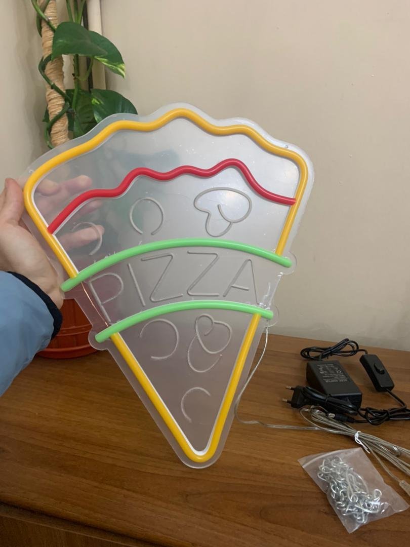 Transformez votre restaurant ou pizzeria en un lieu encore plus accueillant et attrayant grâce à cette enseigne néon LED spécialement conçue pour les amateurs de pizzas. Ce panneau lumineux combine design moderne et fonctionnalité pratique pour une visibilité accrue et une ambiance irrésistible.Caractéristiques principales :Design thématique : Une représentation colorée et détaillée d’une part de pizza, avec des éléments lumineux comme du fromage fondant, des tranches de pepperoni et des bords dorés, pour capter l’attention des clients.Couleurs vibrantes : Des LEDs aux tons chauds et froids (rouge, jaune, vert) pour donner vie à la pizza tout en créant une atmosphère chaleureuse.Matériaux de qualité : Fabriqué à partir d’acrylique transparent et de bandes LED en silicone résistant, garantissant durabilité et légèreté.Économie d’énergie : Consommation énergétique réduite grâce à la technologie LED, parfaite pour une utilisation prolongée.Dimensions : 40x30cmAvantages :Attire l’attention : Un outil marketing puissant pour attirer les passants et renforcer la reconnaissance de votre marque.Ambiance personnalisée : Ajoute une touche contemporaine et fun à votre décor intérieur ou extérieur.Facile à installer : Livré avec un kit de fixation murale et une chaîne suspendue pour une installation rapide.Sécuritaire et durable : LEDs à basse tension pour une sécurité optimale, même dans un espace fréquenté.