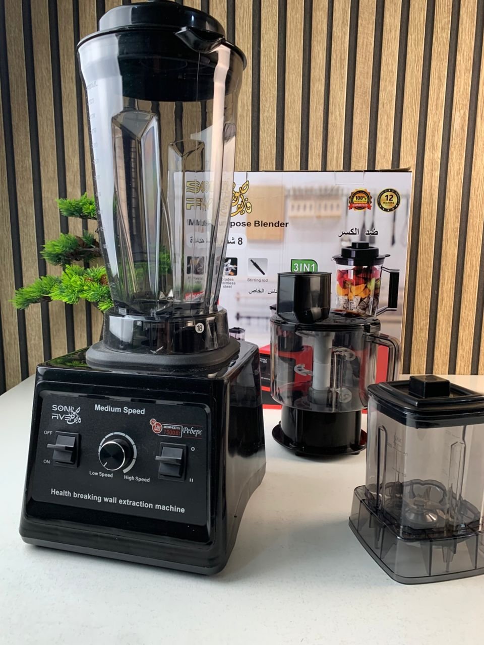 Soni Five Mixeur Blender Multifonction 3en1 Ultra Puissant 7500W avec 8 Lames en Acier Inoxydable