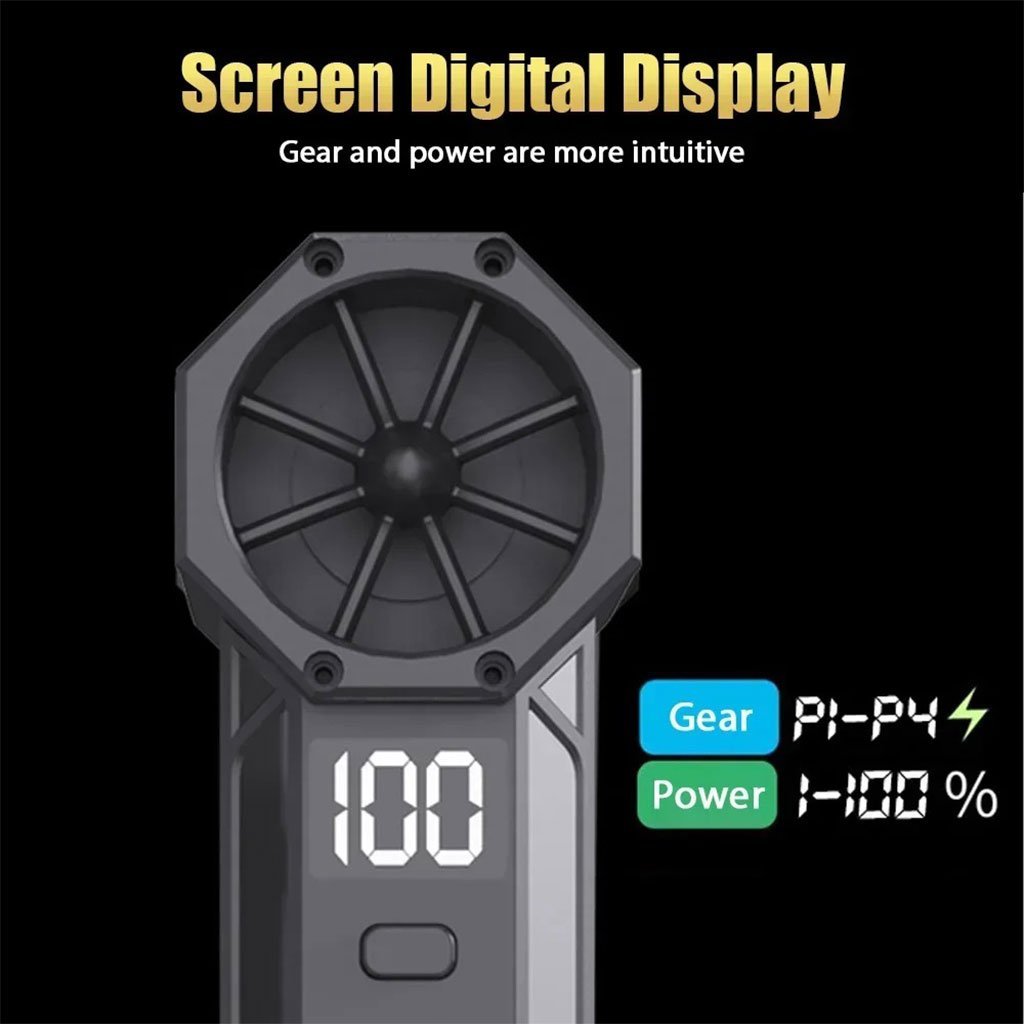 ⚡️ مروحة توربو محمولة فائقة القوة 130000 دورة/دقيقةقوة رياح خارقة: مزودة بمحرك بدون فُرش يعمل بسرعات عالية تصل إلى 130000 دورة في الدقيقة، ما يمنحك تدفق هواء قوي ومباشر في كل لحظة.أربع سرعات للتحكم الكامل:السرعة الأولى (بطيئة) : 40000 دورة/دقيقةالسرعة الثانية (متوسطة) : 80000 دورة/دقيقةالسرعة الثالثة (عاصفة) : 110000 دورة/دقيقةالسرعة الرابعة (إعصار فائق) : 130000 دورة/دقيقةتصميم بإضاءة مدمجة: تحتوي المروحة على أضواء LED ساطعة تُمكّنك من استخدامها حتى في الظلام، مثالية لتنظيف الزوايا أو للاستعمال في المخيمات ليلاً.محمولة وخفيفة الوزن: بفضل حجمها الصغير وتصميمها المدمج، يمكنك حملها بسهولة أينما ذهبت. مثالية للاستخدام داخل السيارة، في السفر، أو في الهواء الطلق.شاشة رقمية ذكية: تعرض مستوى السرعة وشحن البطارية بوضوح. تحتوي على بطاريتين مدمجتين قوية تسمحان بالاستخدام اللاسلكي دون الحاجة إلى مصدر كهرباء مباشر، لتجربة مريحة تدوم طويلاً.هيكل عالي الجودة وشحن سريع: تصميم أنيق ومتين بهيكل محمول وخفيف. مزودة بمنفذ شحن Type-C سريع، يُسهّل إعادة الشحن بشكل آمن وسريع.سهولة في الاستخدام وأمان تام: مزودة بأربع مستويات سرعة مع مؤشرات ضوئية، وتصميم مريح لسهولة الحمل والاستخدام بيد واحدة. كما تحتوي على نظام حماية ذكي ضد الشحن الزائد وارتفاع الحرارة، لضمان الاستخدام الآمن.