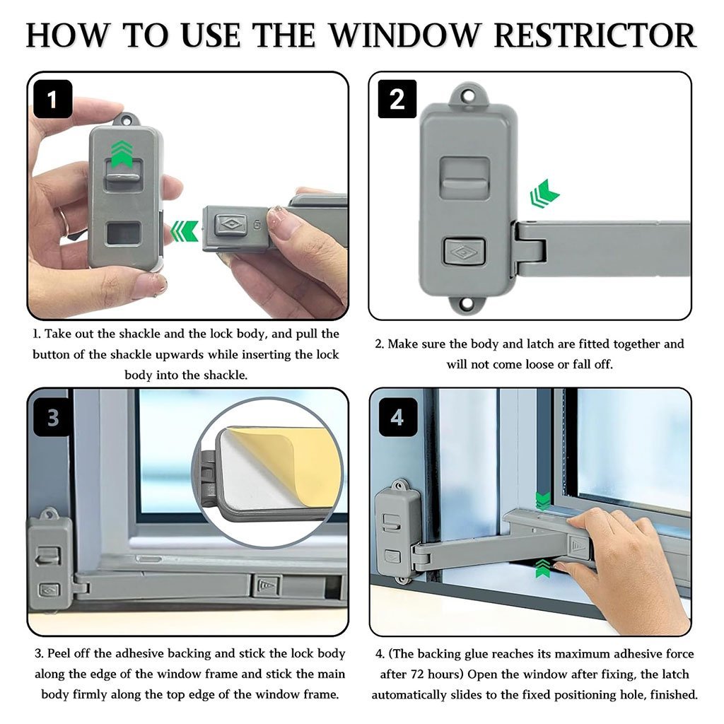 🔒 قفل أمان للنوافذ UPVC – حماية مثالية للأطفال دون حفر!✔️ الأمان أولاً ! هل تبحث عن طريقة موثوقة لتأمين النوافذ في منزلك؟ يوفر لك هذا القفل الذكي حماية فعّالة، حيث يمنع فتح النافذة إلا بمسافة 7 سم فقط للسماح بمرور الهواء دون تعريض الأطفال للخطر.✔️ تركيب سهل بدون أدوات مزود بلاصق قوي خاص يلتصق بإحكام على إطار النافذة. وعند إزالته، لا يترك أي آثار أو خدوش.✔️ مناسب لمختلف أنواع النوافذ مصمم ليناسب النوافذ التي تُفتح للداخل أو للخارج بشرط أن يكون عرض الإطار 35 مم على الأقل.⭐ المزايا الرئيسية🔐 أمان عالي يمنع فتح النافذة بالكامل لحماية الأطفال.💨 تهوية آمنة بفتحة مقيدة لا تتجاوز 7 سم.🛠️ تركيب بلا حفر، بلا براغي، بلا فوضى.🧼 إزالة نظيفة بدون بقايا لاصق.🏠 متوافق مع أغلب نوافذ UPVC المنزلية.