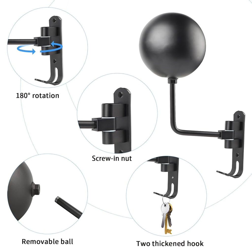 Support Mural pour Casque avec 2 Crochets pour Manteaux – حامل خوذة يُثبّت على الحائط مزود بخطافين للمعاطف