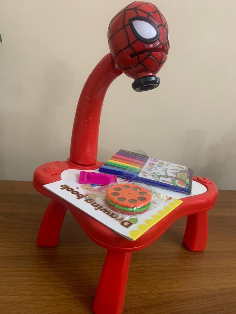 وصف المنتججهاز عرض للرسم للأطفال على شكل زرافةتصميم جذاب: جهاز عرض لطيف على شكل زرافة بألوان زاهية لجذب انتباه الأطفال وتشجيعهم على الرسم والتلوين.طريقة الاستخدام: يعمل بثلاث بطاريات AA (غير مشمولة)، مع 6 شرائح عرض تحتوي على 36 صورة مختلفة، ويمكن مسح الرسومات بسهولة بالإسفنجة المرفقة لإعادة الاستخدام.تحفيز المهارات: يساعد الطفل على تحسين مهارة التحكم باليد والأصابع ويعزز الإبداع والخيال منذ سن مبكرة.مجموعة متكاملة: تشمل الجهاز، طاولة رسم، إسفنجة، دفتر للرسم، و12 قلم تلوين.المادة: بلاستيك آمن للأطفال.الأبعاد: الطاولة 25×21×35 سم، ارتفاع السطح عن الأرض 13 سم، وارتفاع جهاز العرض عن الطاولة 16.5 سم.مناسب للأطفال من عمر 3 سنوات فأكثر.