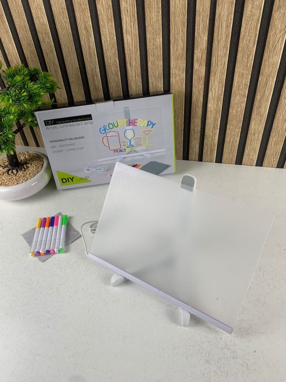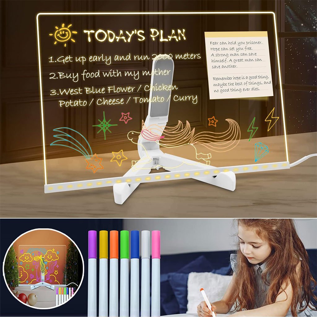 Tableau mémo LED lumineux avec stylo 7 couleurs et support – لوحة كتابة مضيئة للأطفال