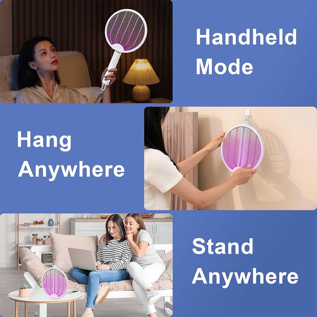 Tapette à Mouche électrique 3 en 1 3000V Rechargeable par USB – صاعق الناموس