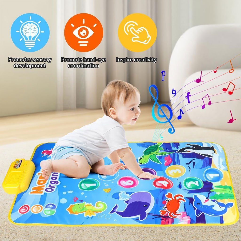 سجادة بيانو موسيقية للأطفال – متعة وتعلّم في آن واحد! امنح طفلك تجربة ممتعة وتعليمية مع هذه السجادة الموسيقية التي تحتوي على 9 مفاتيح بيانو، 8 أصوات حيوانات، و6 مقاطع موسيقية. تُحفز التنسيق بين العين واليد وتطوّر المهارات الحركية الدقيقة.【آمنة ومريحة】 مصنوعة من بلاستيك عالي الجودة، ناعم وخالٍ من الروائح، مع قاعدة مانعة للانزلاق تتيح للطفل اللعب والقفز بحرية وأمان.تصميم جذاب وتعليمي ألوان زاهية ورسومات دقيقة تضم حيوانات، أرقام، ونباتات لجذب انتباه الطفل وتعزيز الإدراك البصري والسمعي.【تعليم مبكر وتنمية معرفية】 تساعد الطفل على التعرف على الأرقام والحيوانات بطريقة تفاعلية ممتعة، مما يشجع على حب الاستكشاف والتعلّم.هدية مثالية للصغار يمكن استخدامها داخل أو خارج المنزل، وتعتبر هدية مثالية للأطفال الرضع والحديثي المشي. تجمع بين الترفيه والتعليم في منتج واحد.