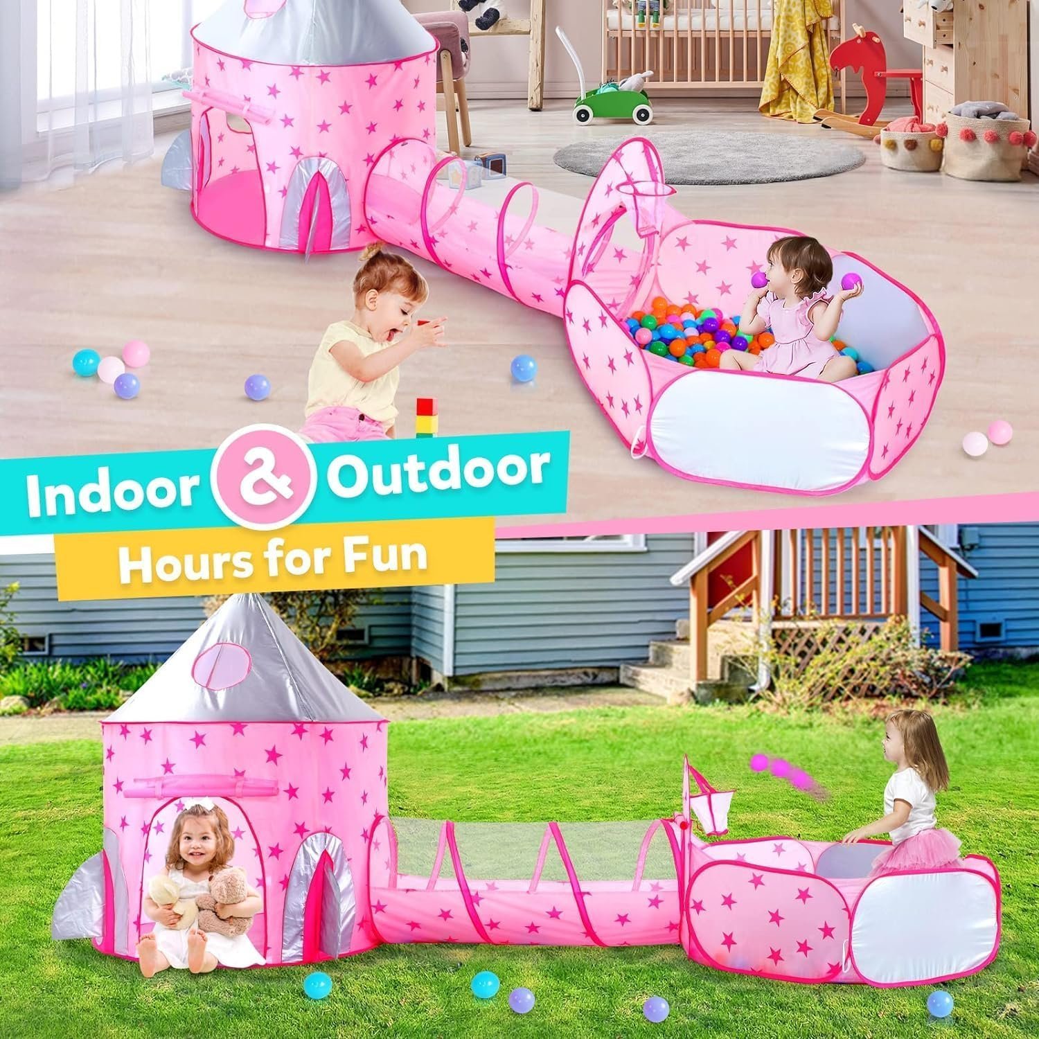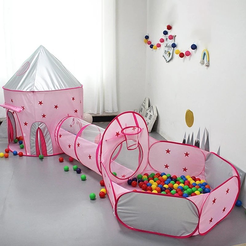 Tente de jeu 3 pièces pour enfants Château et Tunnel avec piscine – خيمة ترفيهية للأطفال