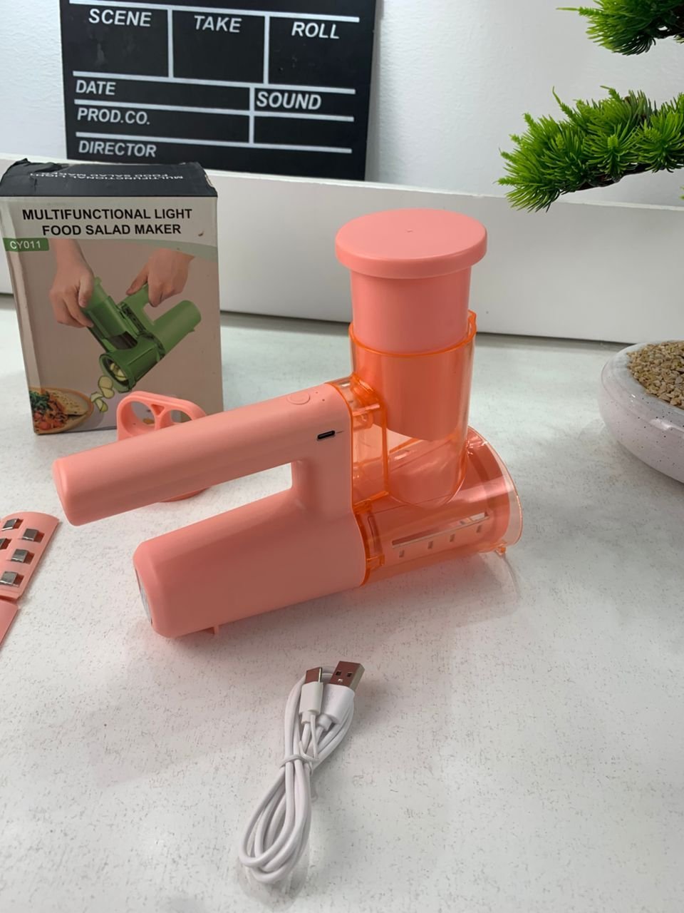 🍅 محضّر خضروات كهربائي متعدد الوظائف – 4 في 1بسّط تحضيراتك في المطبخ مع قاطع الخضروات الكهربائي متعدد الاستخدامات، المصمم لتقطيع، بشر، فرم وحتى سحق الثلج بسهولة تامة. يتميز بمحرك قوي وبطارية قابلة لإعادة الشحن عبر USB، ليمنحك أداءً سريعًا وفعّالًا دون أي جهد – مثالي للمطابخ العصرية.تصميمه المدمج يجعل تخزينه سهلاً، كما أن الملحقات القابلة للتبديل تلبي جميع احتياجاتك سواء للخضروات، الفواكه، المكسرات أو الجبن. مصنوع من مواد آمنة وسهلة التنظيف، مما يجعله خيارك المثالي للاستخدام اليومي.⚙️ المميزات الرئيسية :🥕 وظيفة 4 في 1 : تقطيع، بشر، فرم، وسحق الثلج🔋 شحن USB : بطارية مدمجة بعمر طويل وسهلة الشحن🔪 شفرات من الفولاذ المقاوم للصدأ : قطع دقيق ومتقن🧺 تصميم مدمج وخفيف الوزن : سهل الحمل والتخزين💧 سهل التنظيف : الأجزاء قابلة للفك وغسالة الأطباق🧴 مواد آمنة : خالٍ من مادة BPA وآمن للطعام⏱️ استخدام بسيط : زر واحد للتحكم وتوفير الوقت📏 الأبعاد موضحة في الصور