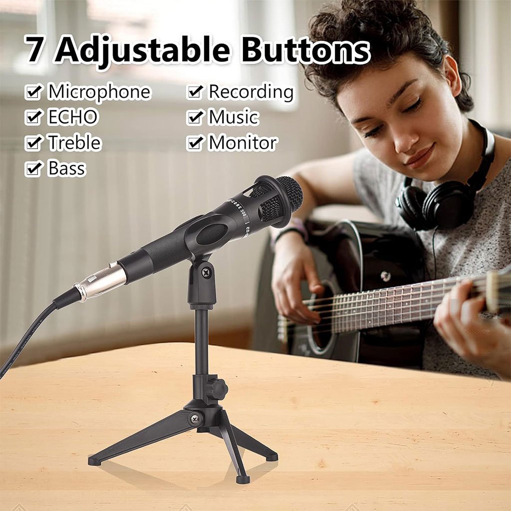 🎶 بطاقة صوت متعددة الوظائف للبث المباشر مزودة بـ 12 مؤثر صوتي و6 أوضاع صوت مختلفة، مع مفاتيح تحكم مستقلة للصوت، الصدى، النغمات، والموسيقى. 💎 تقنية عزل الضوضاء المزدوجة توفر صوتاً نقياً لتجربة احترافية في الـ DJ، البودكاست، الكاراوكي والبث المباشر. توصيل وتشغيل مباشرة دون تعقيدات.