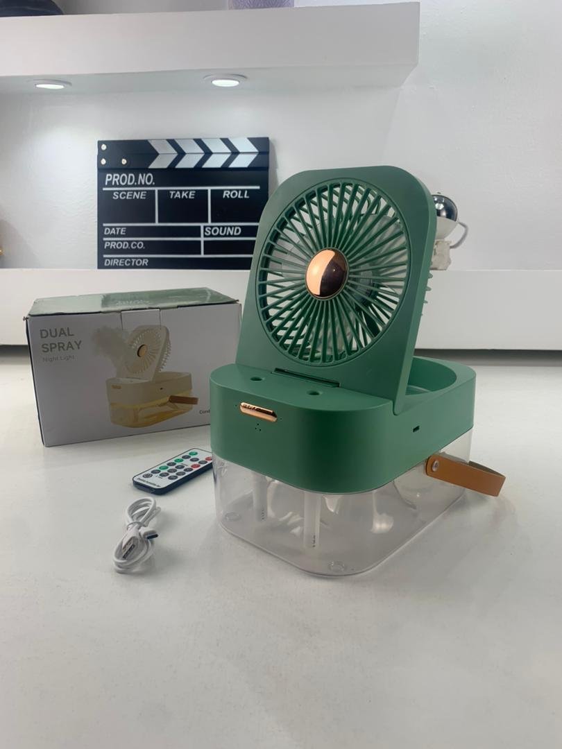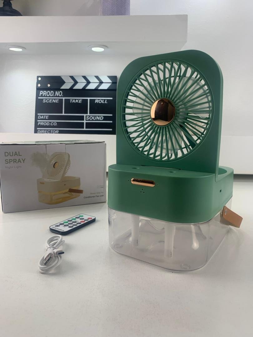 🌬️ مروحة رذاذ مرطبة – تبريد فوري وترطيب مثاليرذاذ مزدوج: يرطب الهواء ويخفف من الجفاف، مع الحفاظ على نضارة البشرة.3 مستويات للرذاذ: سهلة الاستخدام بزر واحد.ضوء ليلي دافئ: يضيف جوًا مريحًا ليلاً.محمولة: مثالية للأنشطة الخارجية، الرحلات، والمكاتب.شاملة التحكم عن بعد ووظيفة التوقيت، لتوفير الراحة والتكيف مع أي مكان وزمان.